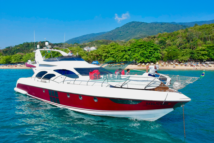 Grande, imponente e extremamente espaçosa, ela oferece o ambiente ideal para reunir amigos e família com total exclusividade. O passeio é 100% privativo: apenas seu grupo e o marinheiro profissional a bordo, garantindo liberdade, conforto e uma experiência verdadeiramente diferenciada.